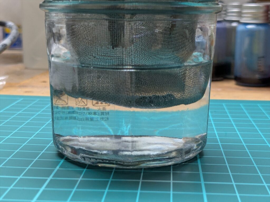 洗浄液が濁っても、塗料のカスは網の下に落ちるので問題なし。