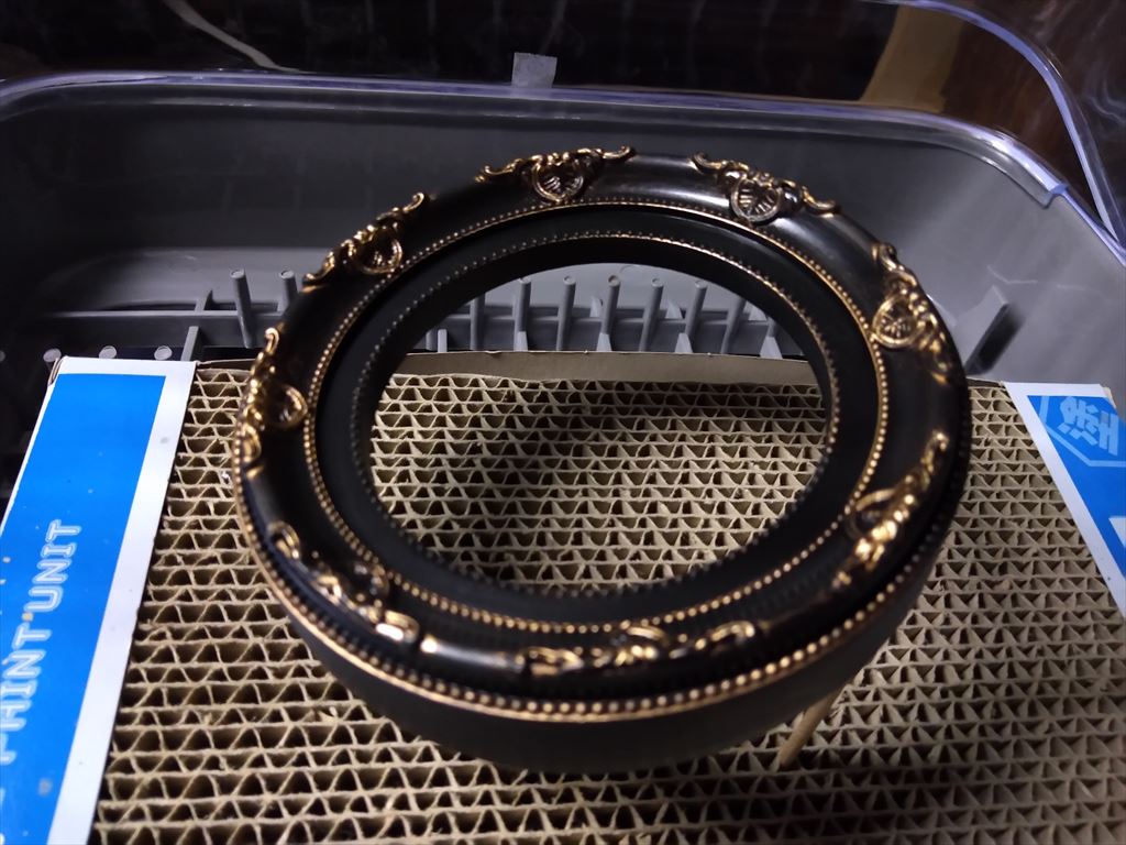 30MS用リニアシートにプラスチック球体を追加する際、台座に100円均のセリアなどで販売されている材質がポリプロピレン製の額縁を使用しました。