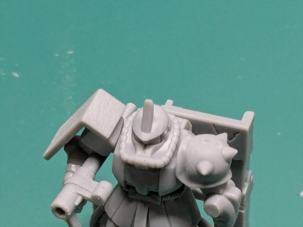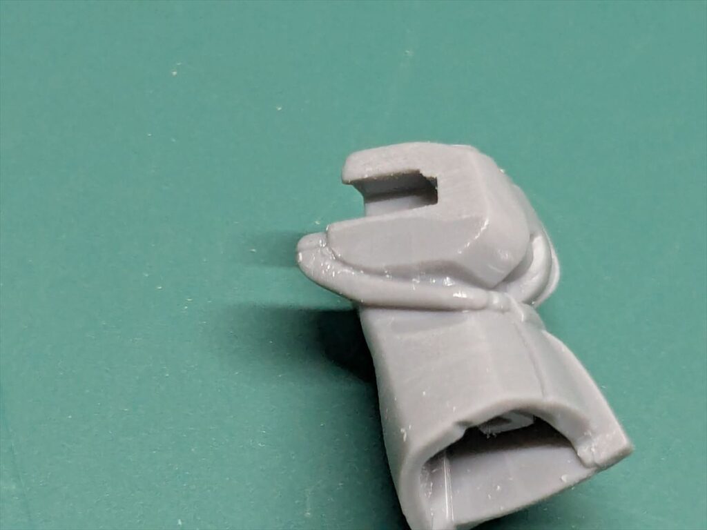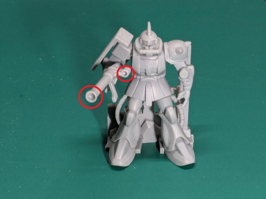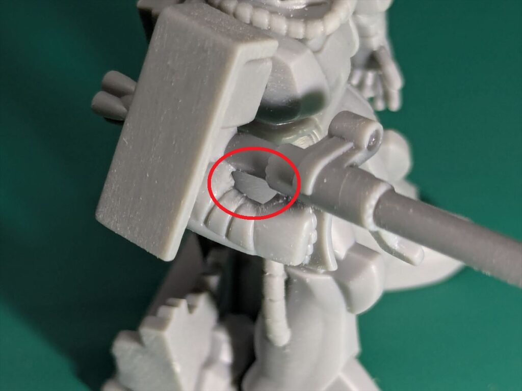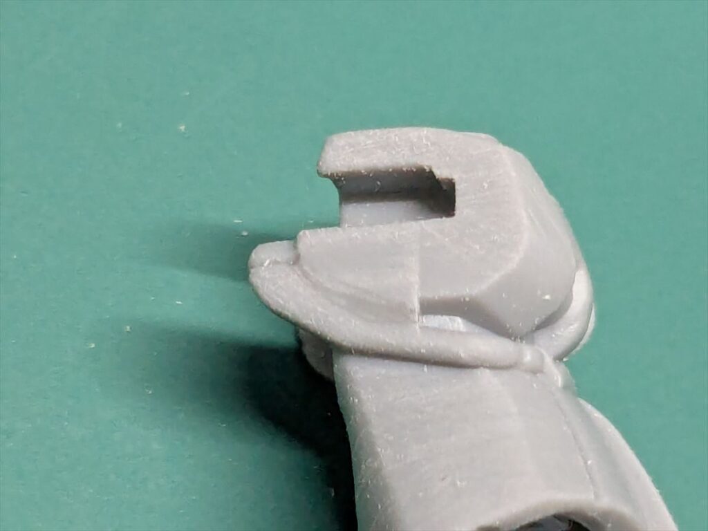 右手前腕とバズーカの間に不要な部分があったため、削ってくり抜きました。