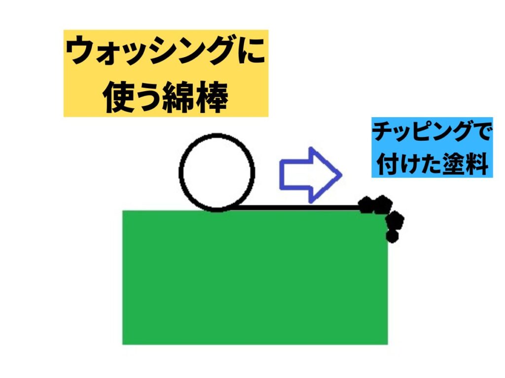 ただ、この塗料は表面に凸状に乗るため、ウォッシングの拭き取りのときに使う綿棒がその凸に引っかかって塗料ごと取れてしまう可能性があります。