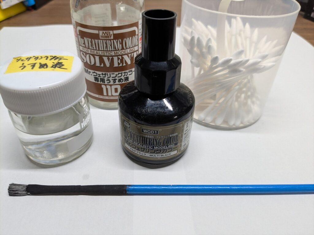 ウォッシングにはMr.ウェザリングカラーのマルチブラックを使用しています。