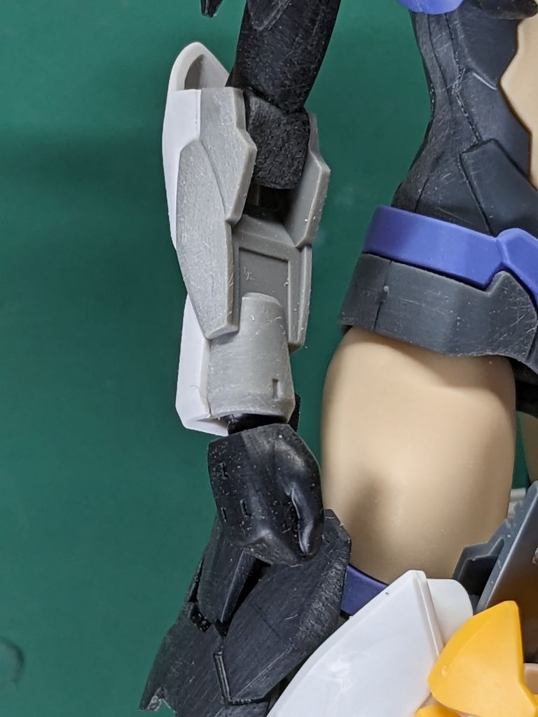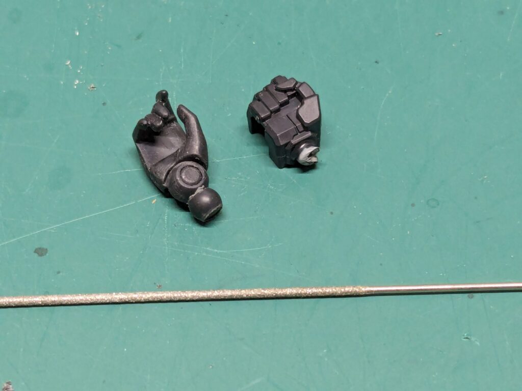 30MSの繊細なシルエットと並べるとバランスが悪いと思い、30MSのハンドパーツを30MMの前腕接続できるよう加工を行いました。