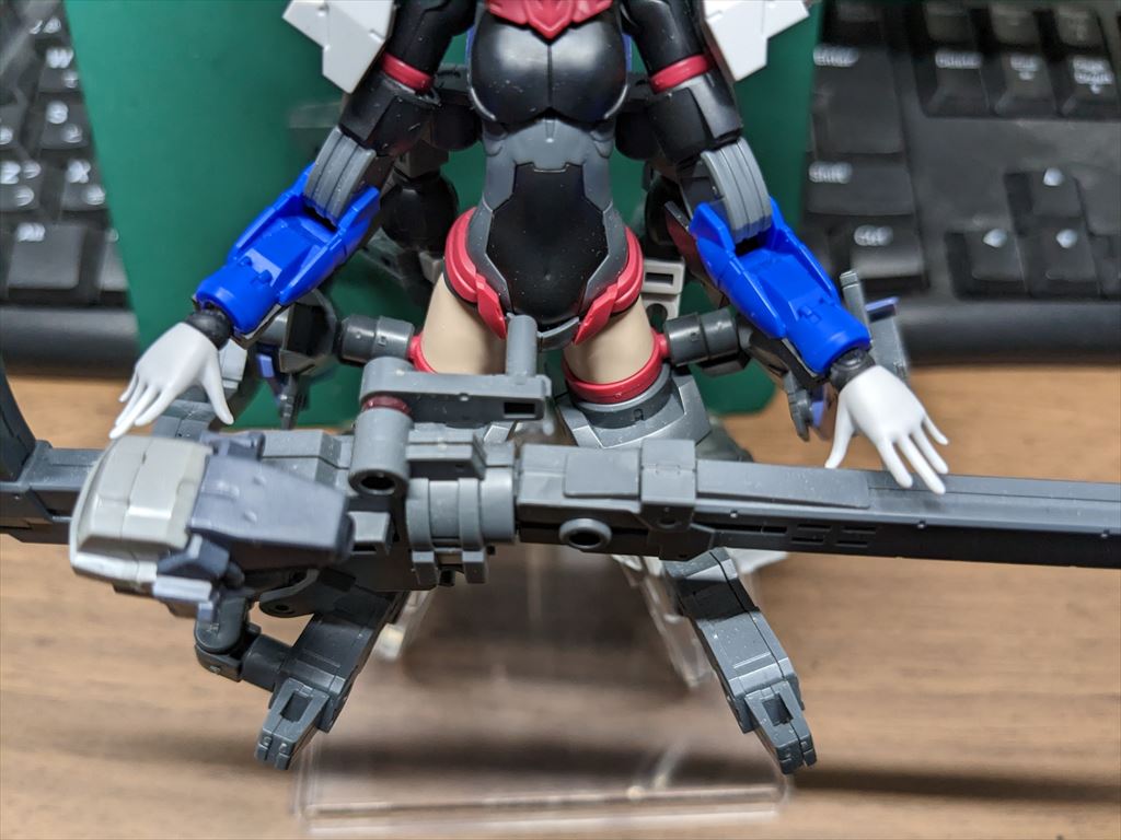 30MMと30MSには互換性があり、30MMの腕を30MSに接続することができます。そのままだと30MMのハンドパーツは30MSのハンドパーツに比べ、大きくてごつく見えます。