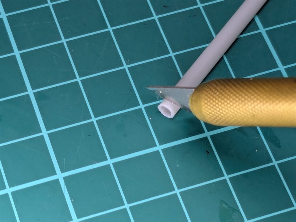 このプラ=パイプを2mmくらいに輪切りにします。