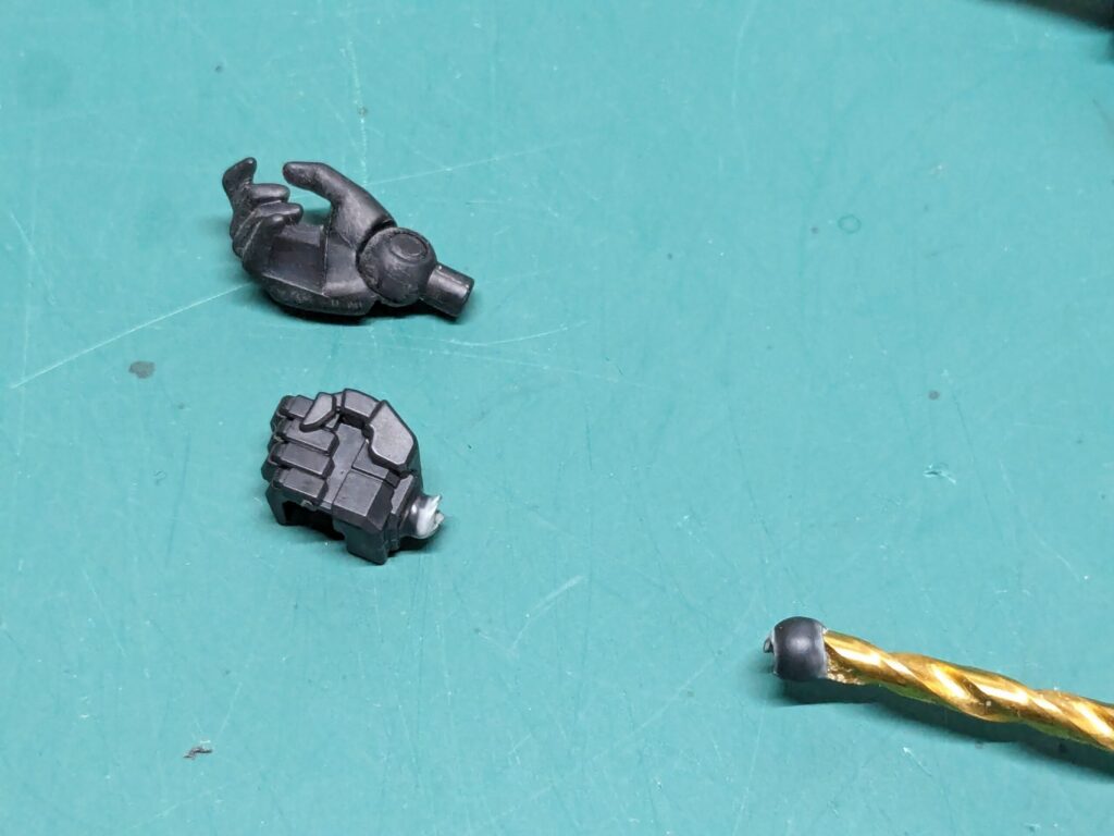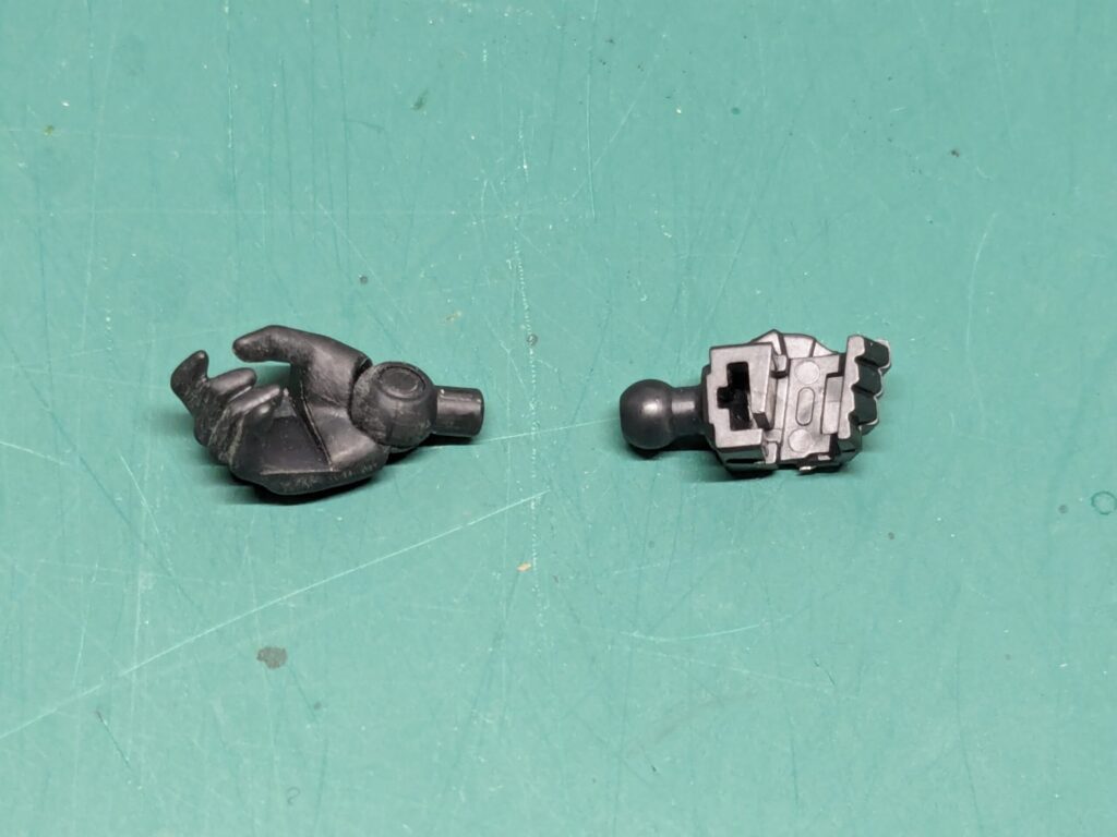 武器持ち手のハンドパーツはそれ以外のものと接続方法が異なるため、加工方法も別になります。