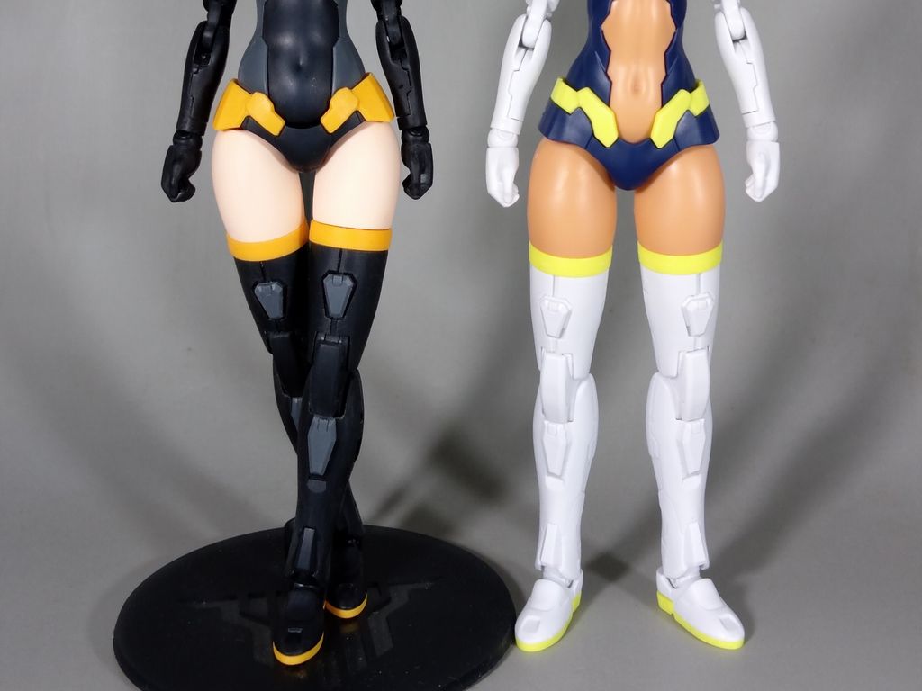 右は太ももがリシェッタと同じ体型である、オプションボディパーツ タイプ G02 [カラーC]に交換した、無加工のルルチェとの比較です。