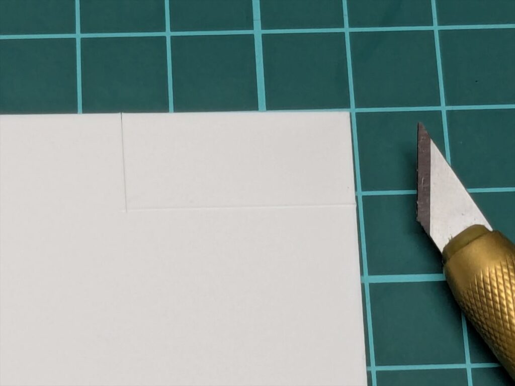 プラ板を切り出しすため、カッター等で切り込みを入れます。
