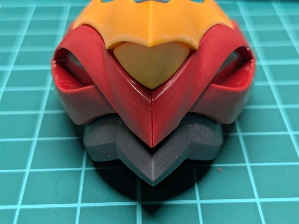 くちばし上のパーツは赤いパーツにがっちり接続されるので。仮組み後に外すのが大変でした。