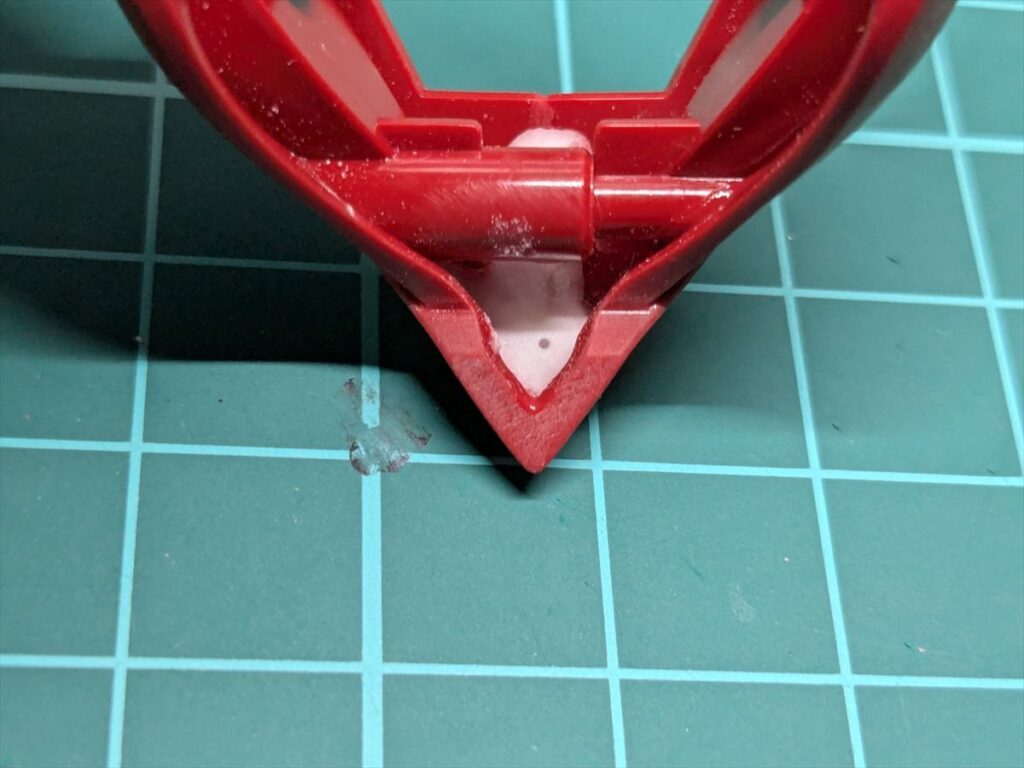 胸部、くちばし状のパーツ下も接続が硬かったため、丸ヤスリで接続穴内側を削りました。
