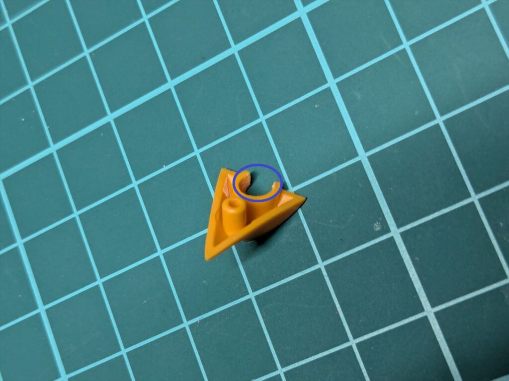 青い丸で囲った部分を削って調整しました。