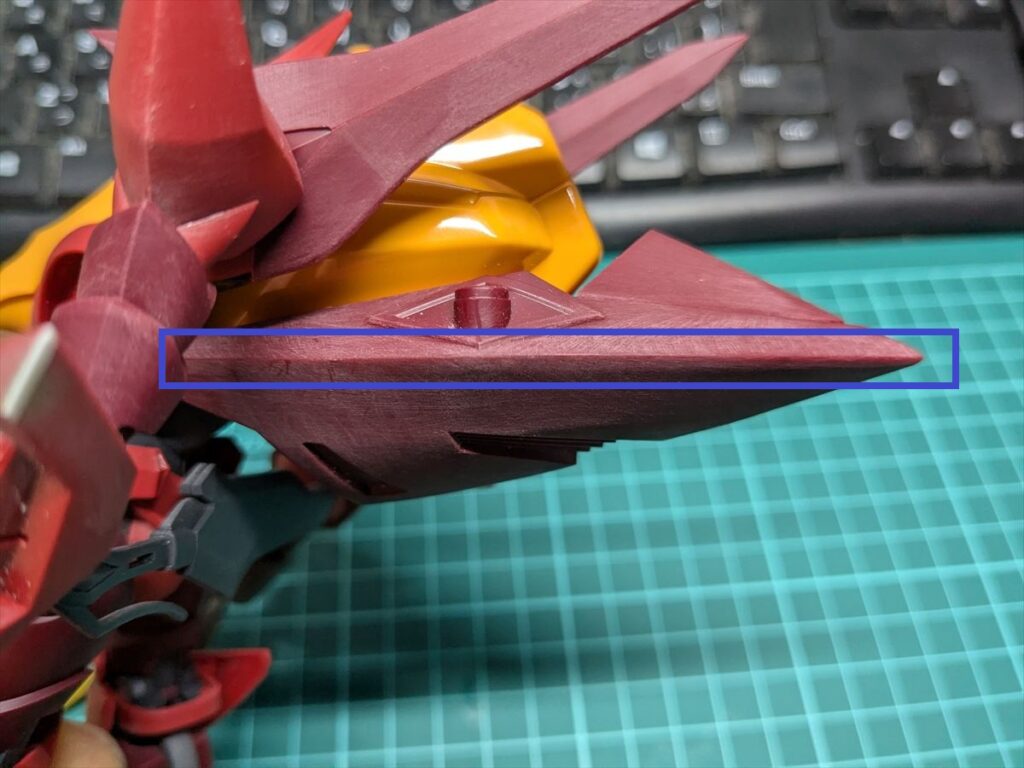 接着面が尖っていないので、ヤスリ掛けで青く囲った部分のエッジ出しを行いました。