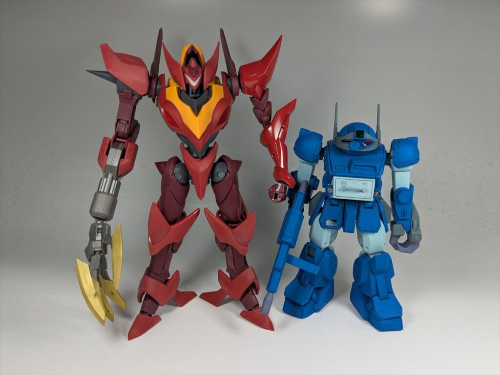 珍しくコードギアスのキットに手を出したのは、スパロボでボトムズと共演して絡むことがあり、紅蓮聖天八極式のスケールがWAVEから発売のボトムズキットと同じ1/35なので、ラビドリードッグと並べてみたかったからです。