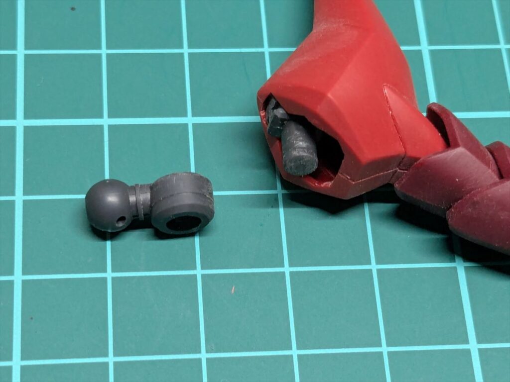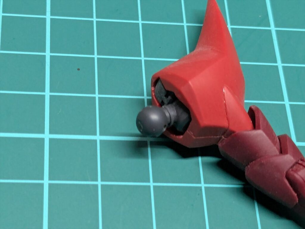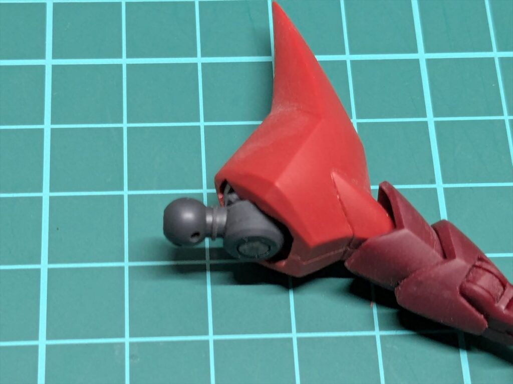 この肩パーツは構造上、後ハメ加工ができないため、関節を挟み込んだ状態で肩を接着しています。