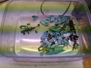 腕部の外装は肩アーマーを接着した以外、ゲート処理とパーティングラインを消したのみです。