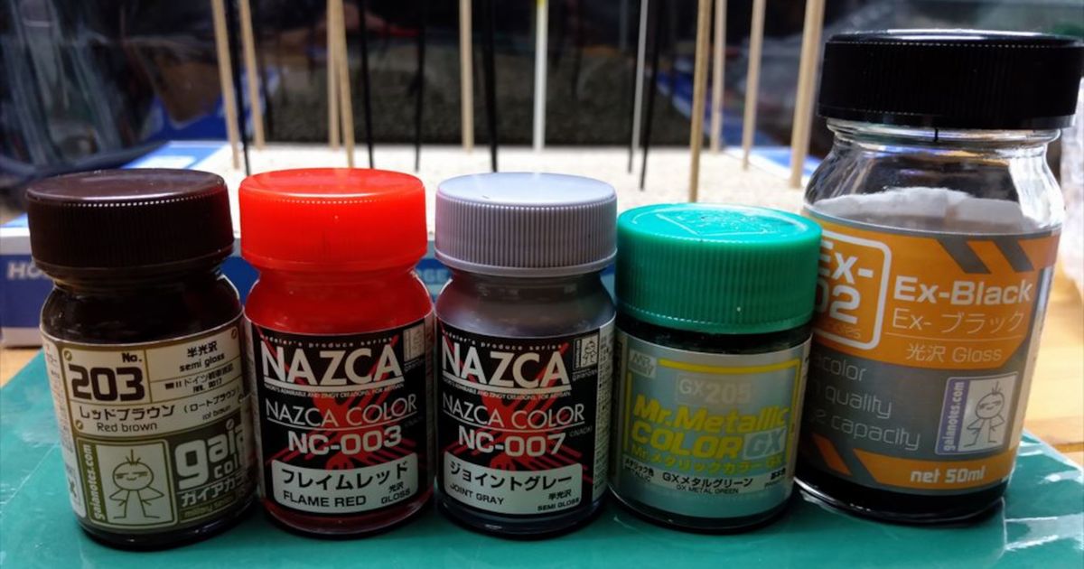 それぞれのパーツのメインの色をエアブラシで塗装し、細かい色は筆塗りで塗装しました。
