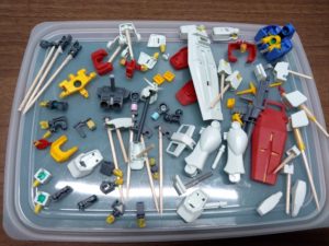 ハンドパーツはキットのものを使用するので、ライフルとシールドのグリップを削ってクリアランスの確保を行っています。