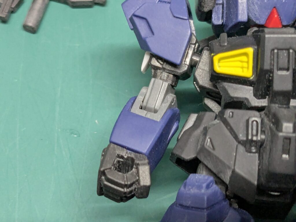 手首の穴は丸ヤスリで穴を広げ、塗装後に武器を持たせた際に塗装が剥がれないようにしました。