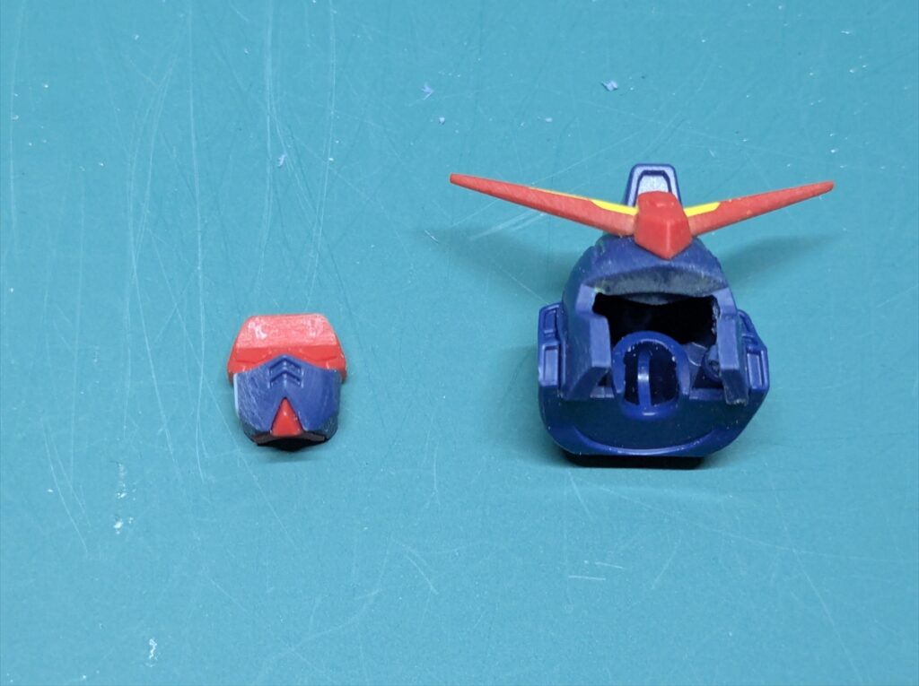 これで塗装後、頭部下からフェイスパーツを差し込むことができます。
