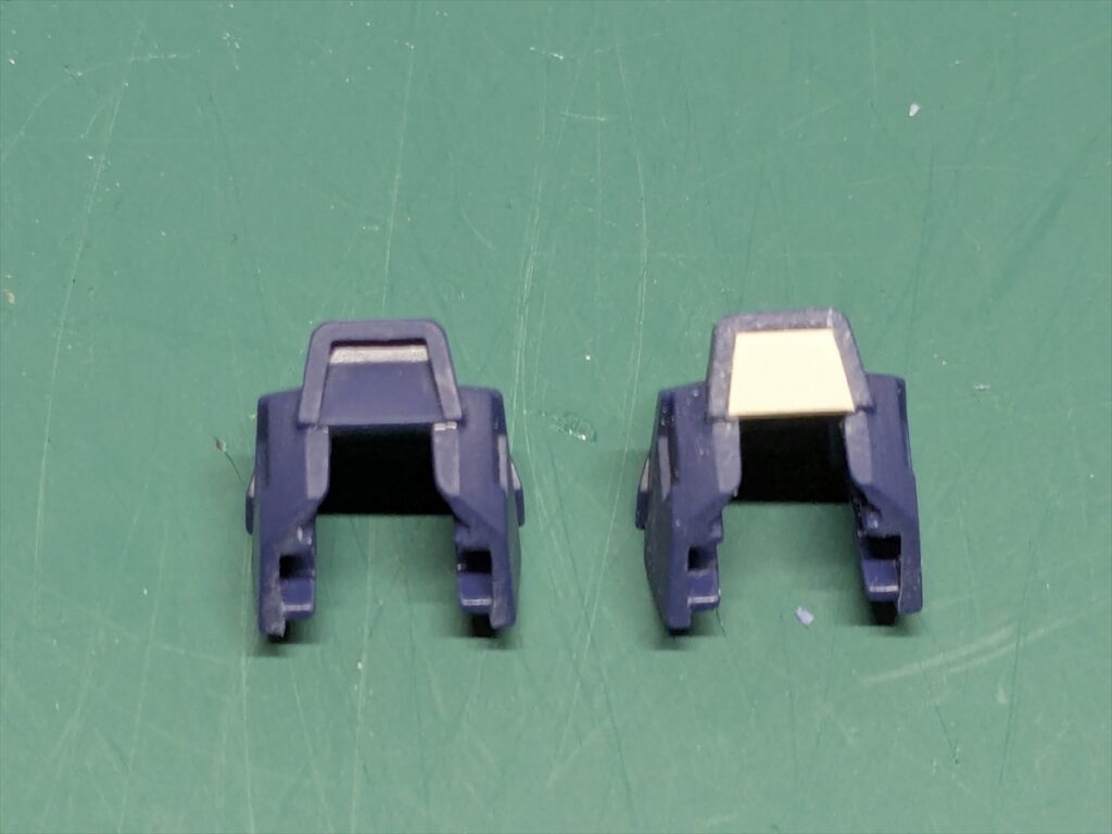 バズーカのセンサーは凸モールドだったので削り落とし、WAVE Uバーニア フラット【長方形】の3.0×4.5を接着。