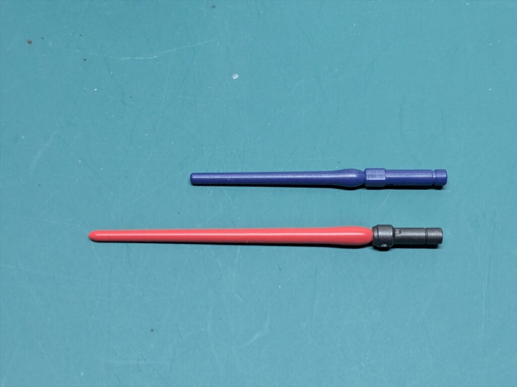 上がMk-Ⅱ用のビームサーベルで、下がガンダム用のビームサーベルです。
