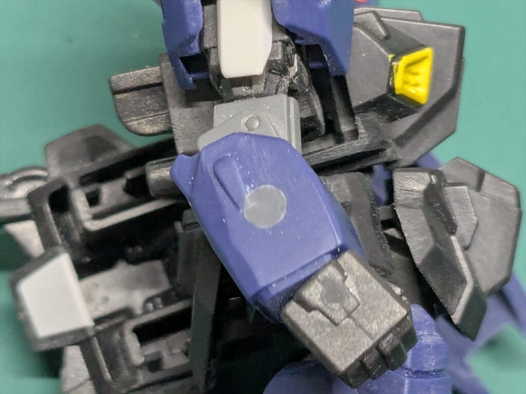 右腕に開いているシールド接続用の穴は、3mmランナーを瞬間接着剤で接着して埋めました。