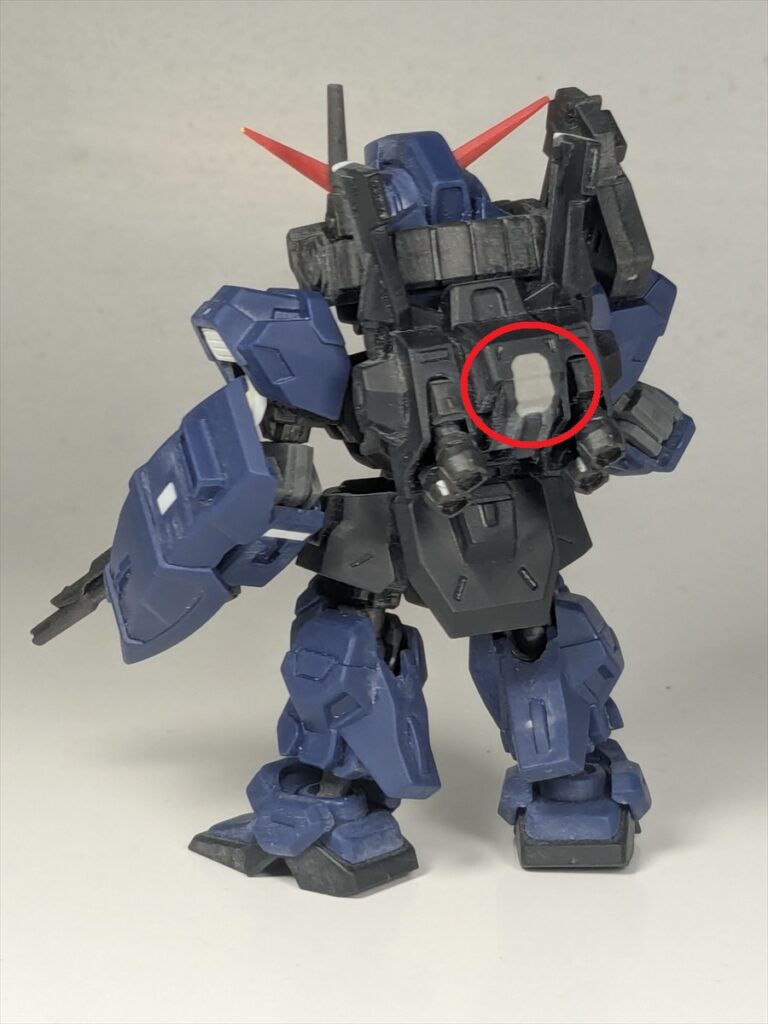 バックパック胴体側中央は肉抜き穴があるので、プラ板を瞬間接着剤で接着。