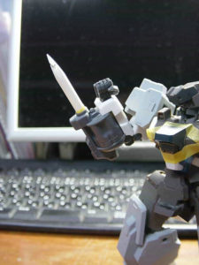 上は背部フレームの右肩にウェポンユニット36 ミサイル&レドームのミサイルを、左肩にアーキテクトの腕を接続した写真です。