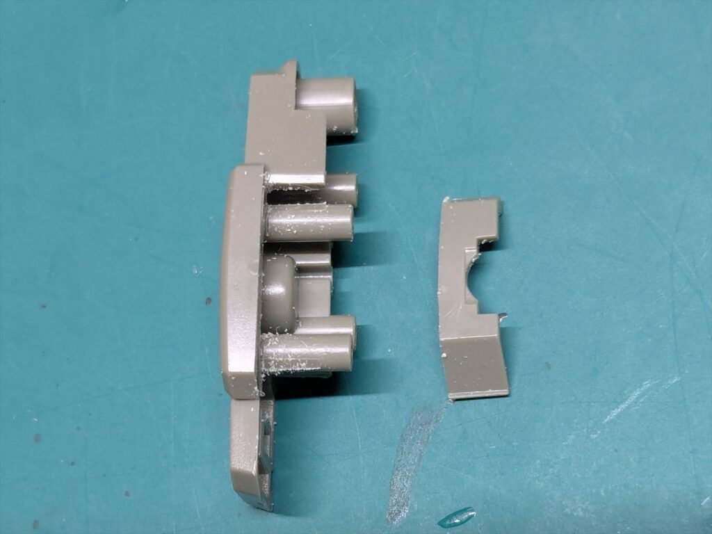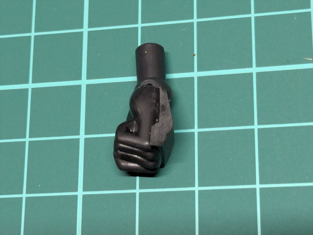 ハンドパーツは手甲部分を塗装するので、PVC製の手首は加工しにくいですがゲート部分を削りました。