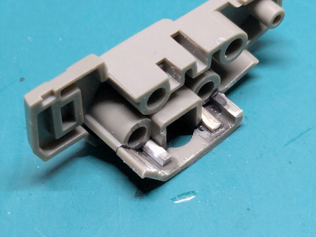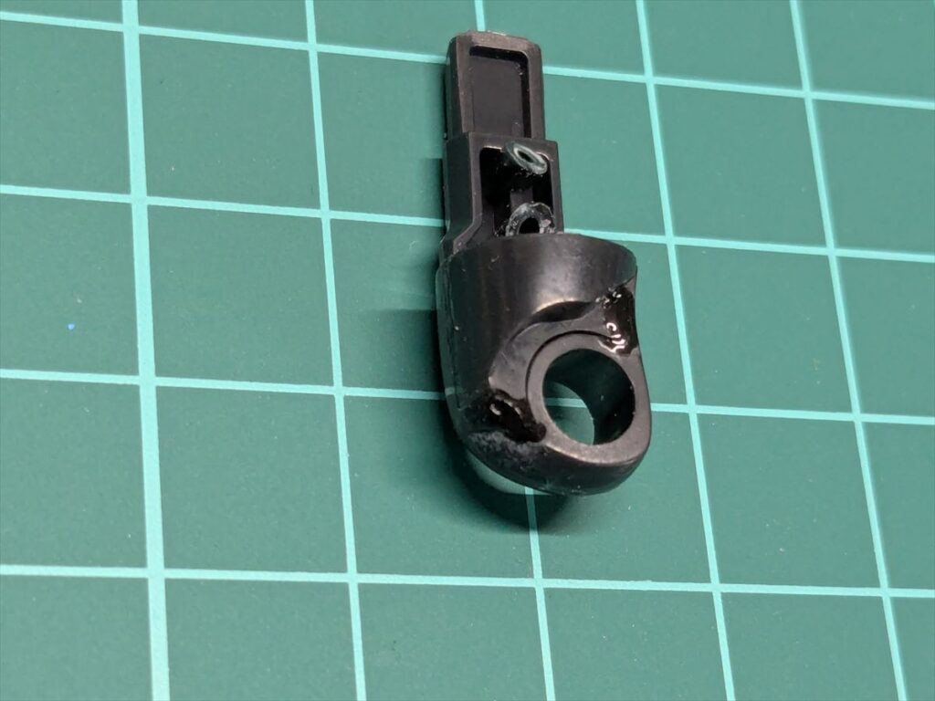 ここは隙間があったため、黒い瞬間接着剤で埋めて処理しています。