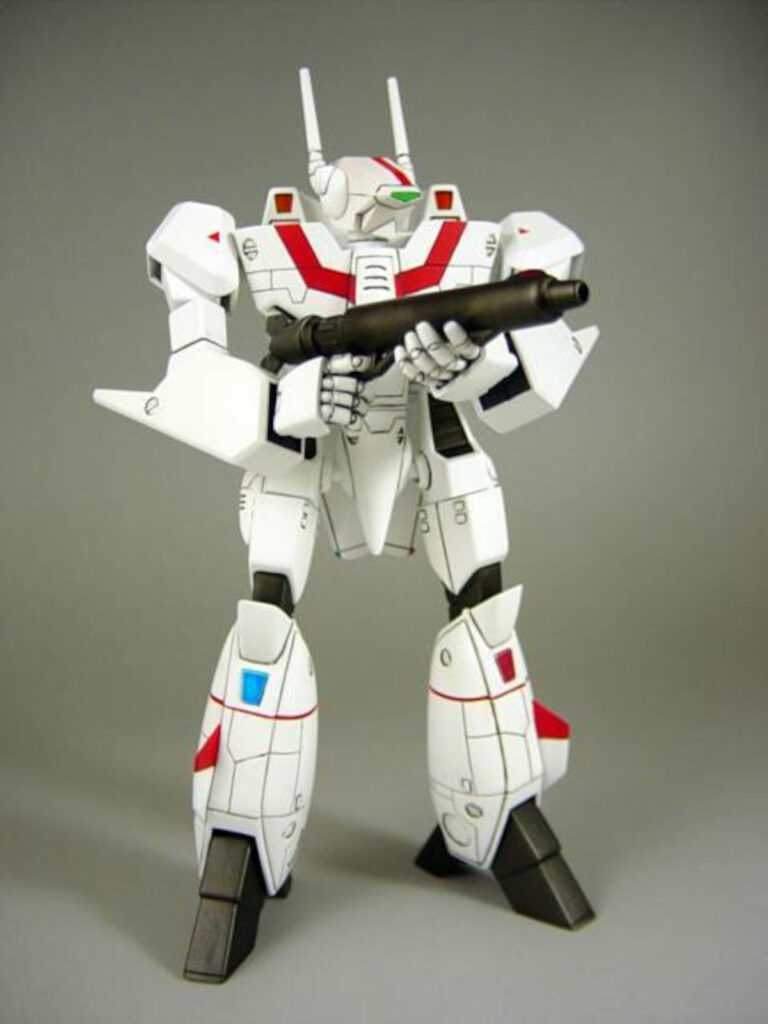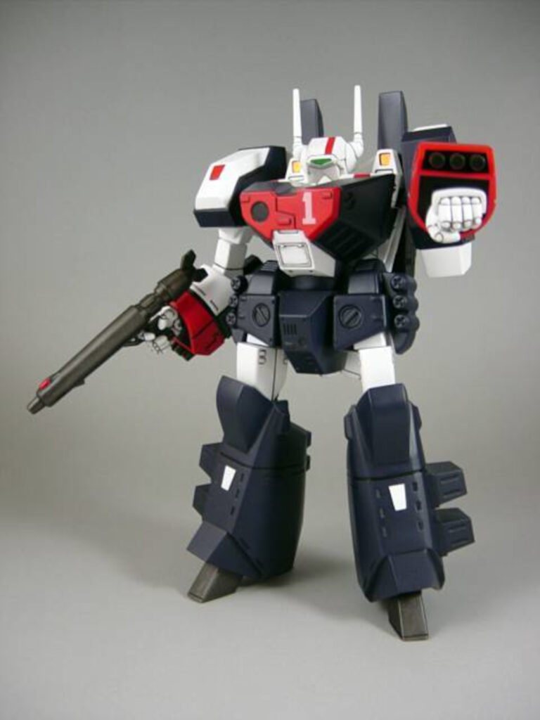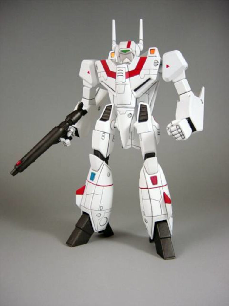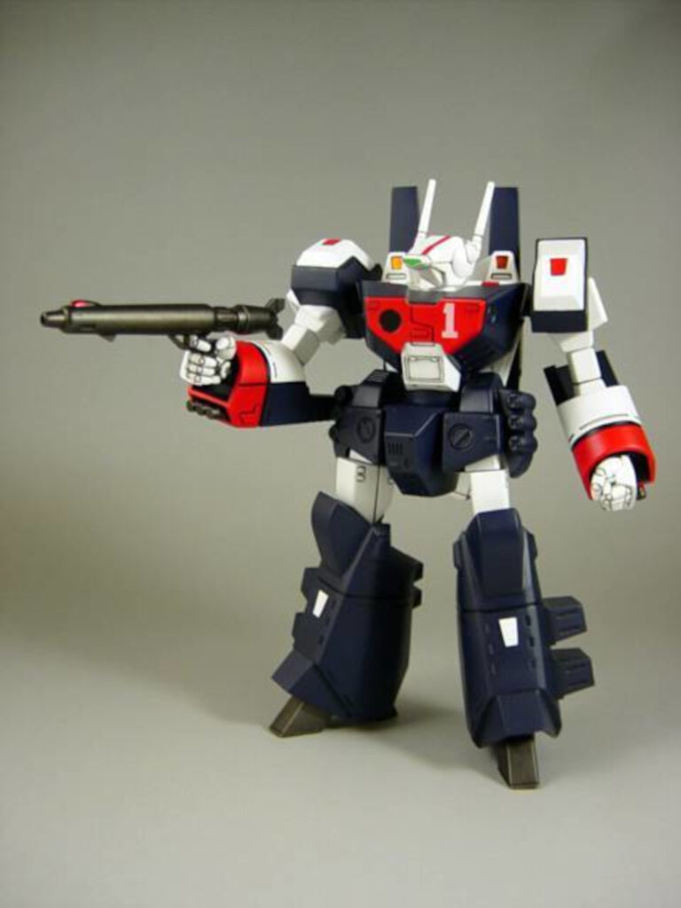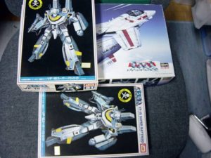 イマイから発売されていた(現在はバンダイで生産)1/100 スーパーバルキリー VF-1を2つと1/100 アーマードバルキリー VF-1J、ハセガワ 1/72 VF-1J バルキリー TV版カラーリングを使い、VF-1J アーマードバルキリーを製作、塗装しました。