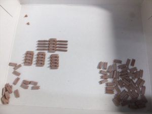 下の30個は昨日接着したもので、ヤスリ掛けを行いました。