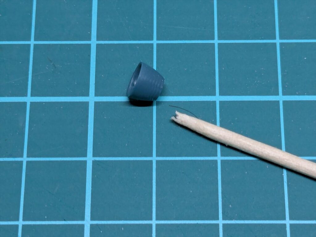 バーニアのゲート処理はパーツが小さいため、手に持ってのヤスリ掛けはうっかりパーツを落としてしまうかもしれません。