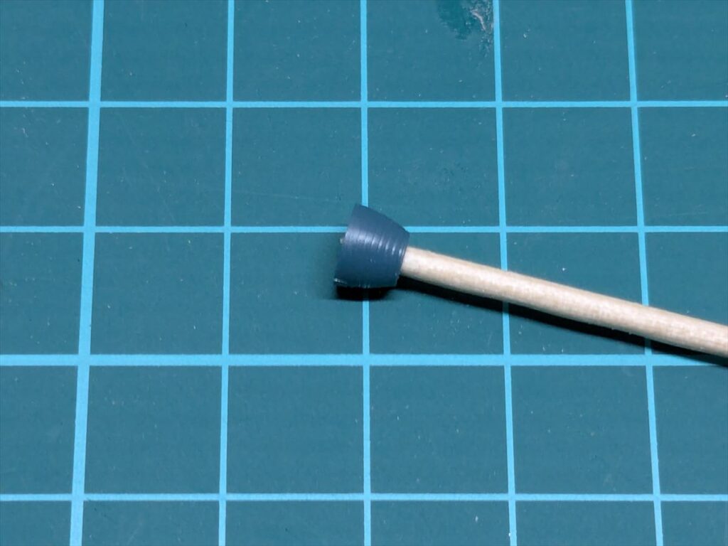 先端を折った爪楊枝を差してヤスリ掛けを行うようにしました。
