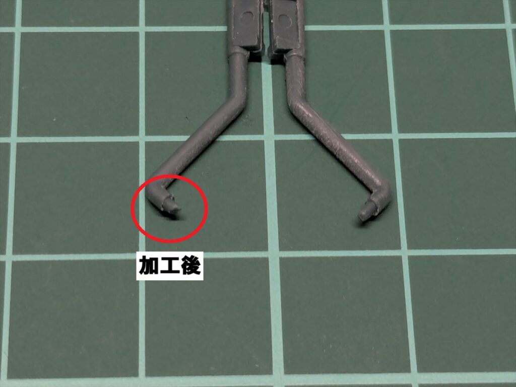 ラウンドムーバー左右の線状のパーツは上下の接続軸を斜めにカット。