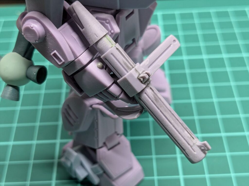 接着すると、銃口側のパーツが銃身側より少し大きいので、銃身側に合わせるように削りました。