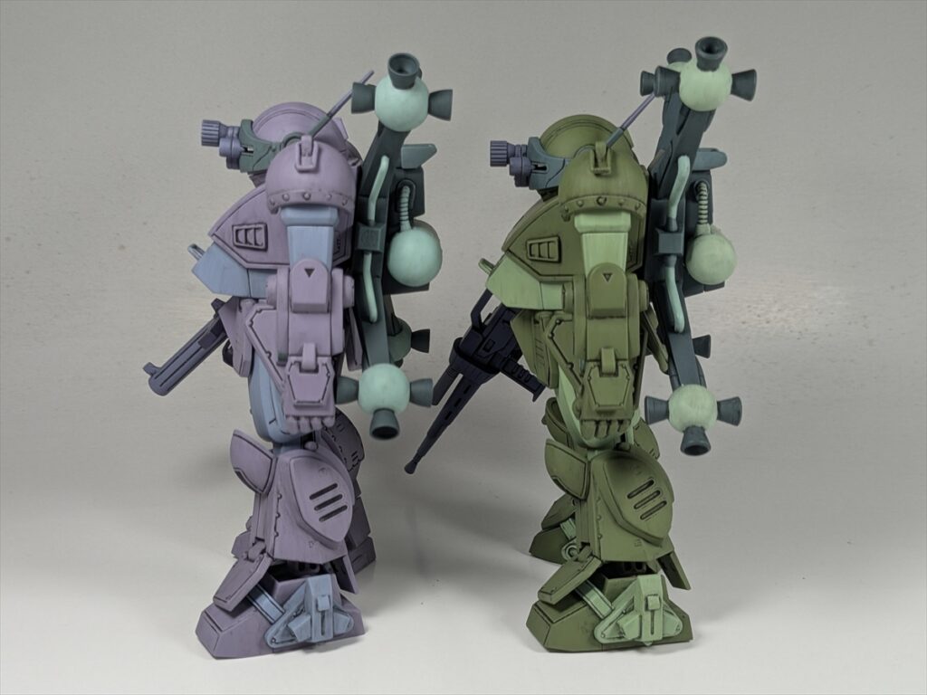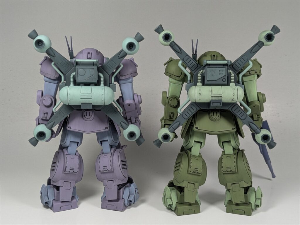 過去に製作した、タカラ版のラウンドムーバーを背負ったスコープドッグと比較。