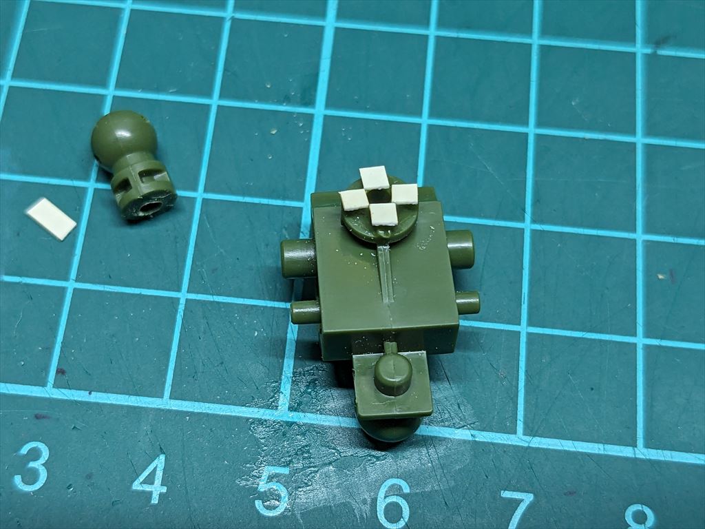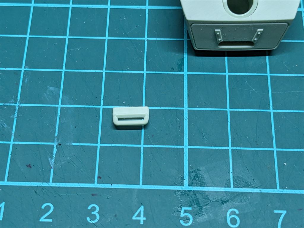 モールドの凸が半丸でないため削り落とし、R・リベット[丸]2.0mmを接着して再現。