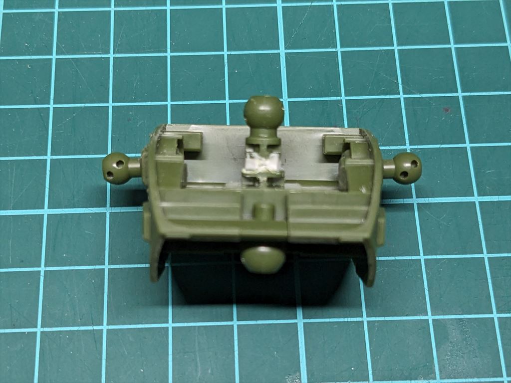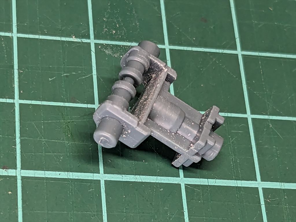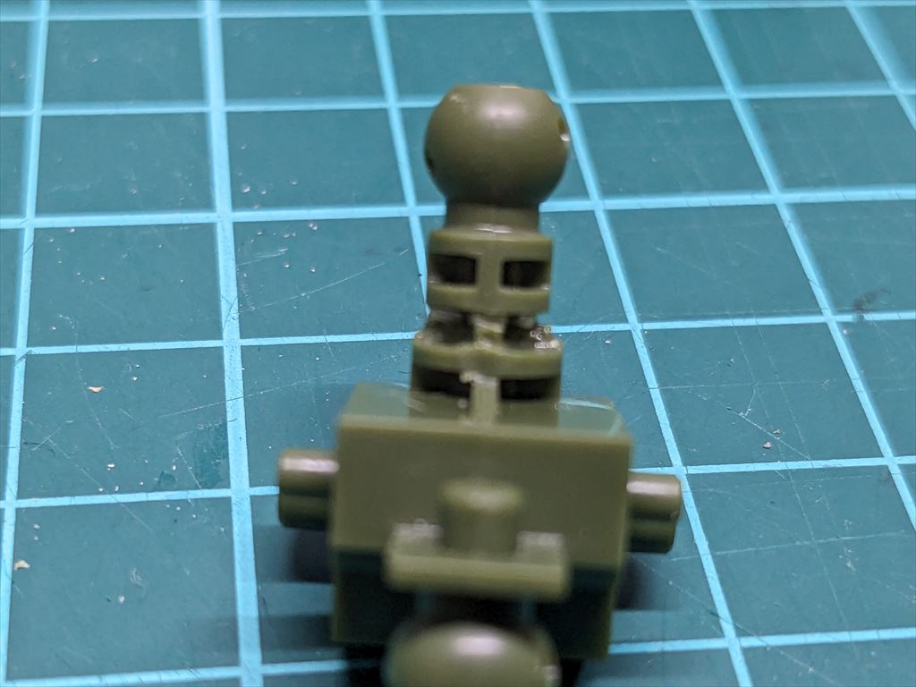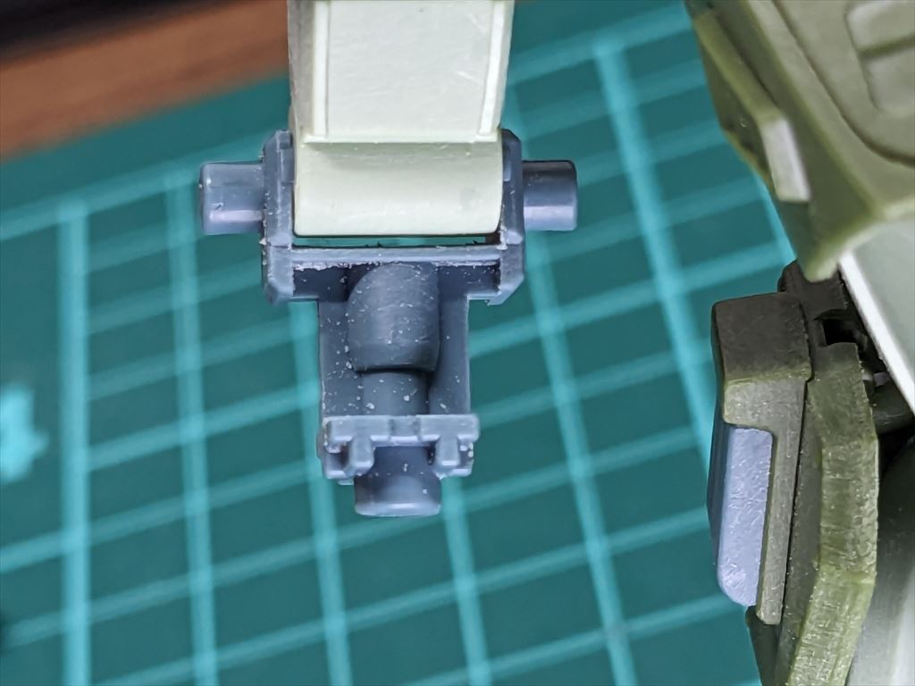 肘関節のクリアランスを確保するため、パーツD4の軸の下を削りました。