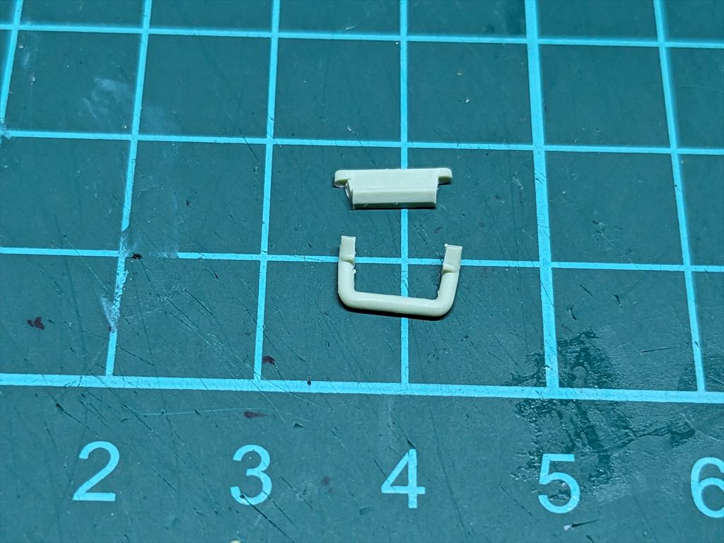 ロールバーを接着してから差し込んだ場所の整形はやりにくそうなので、フックのパーツを加工することにしました。