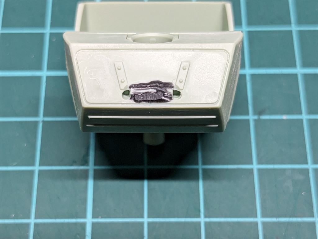 WAVE製と比べて合わせ目が目立つため、3パーツを接着後、黒い瞬間接着剤で隙間を埋めて整形しました。