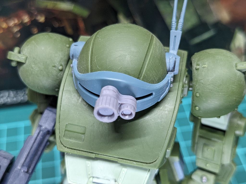 HGスコープドッグのバイザーは中央と左右の3分割構成。