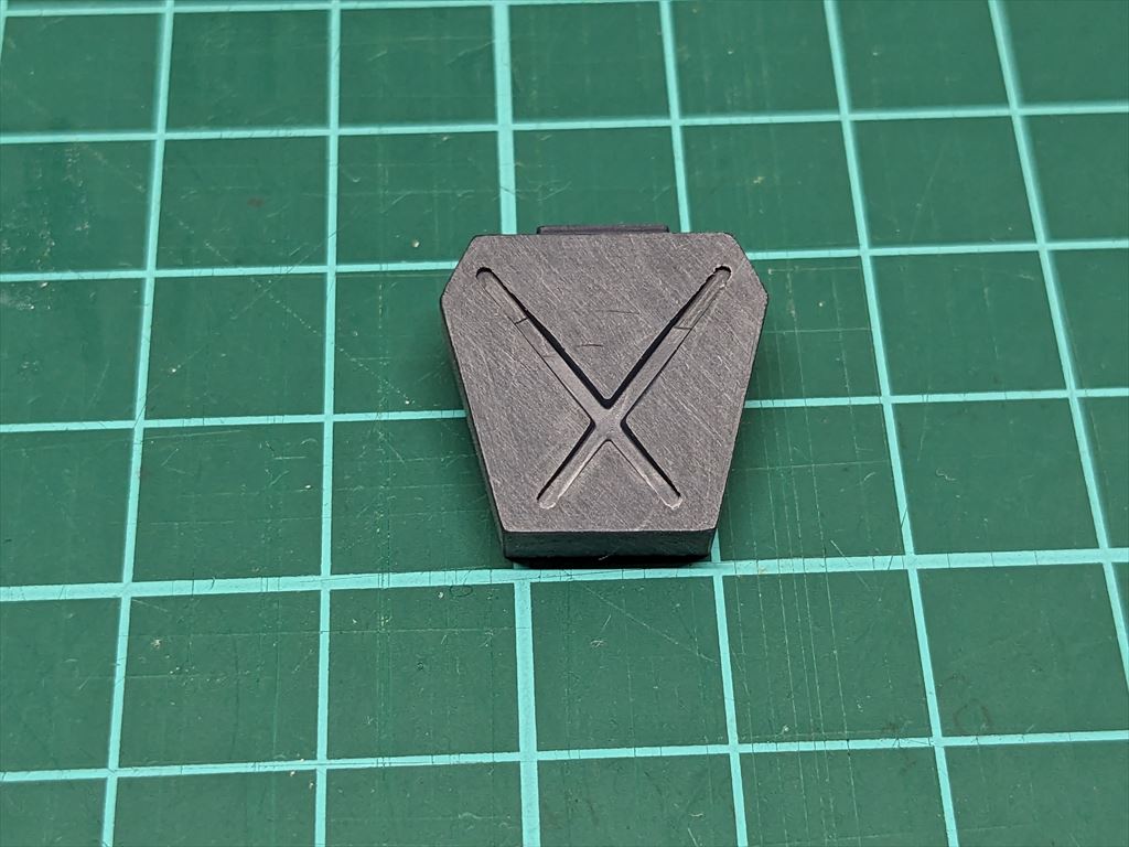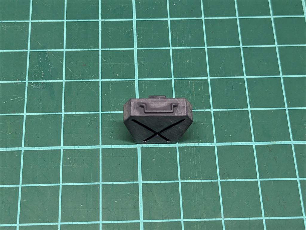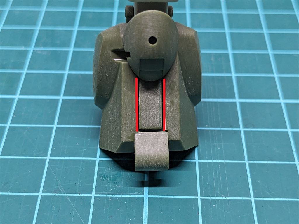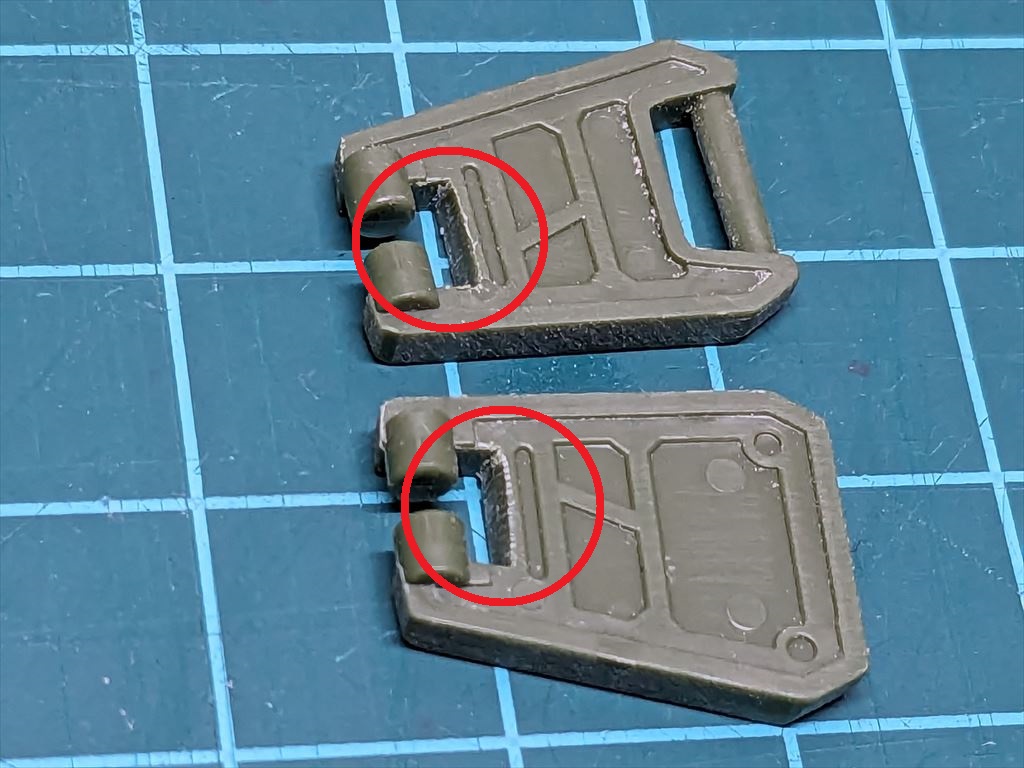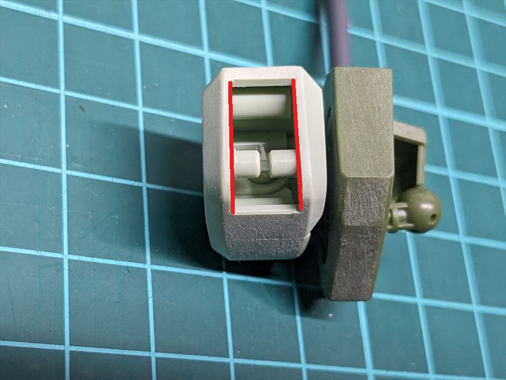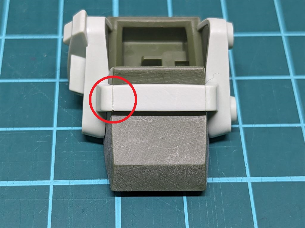 腰との接続干渉を防ぐため、裏面の赤丸部分を斜めに削り込み。