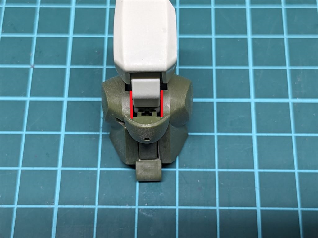 マシンガン(分割した下側)の本体側への差し込み部はきつめなので、上下左右を軽く削って調整しました。