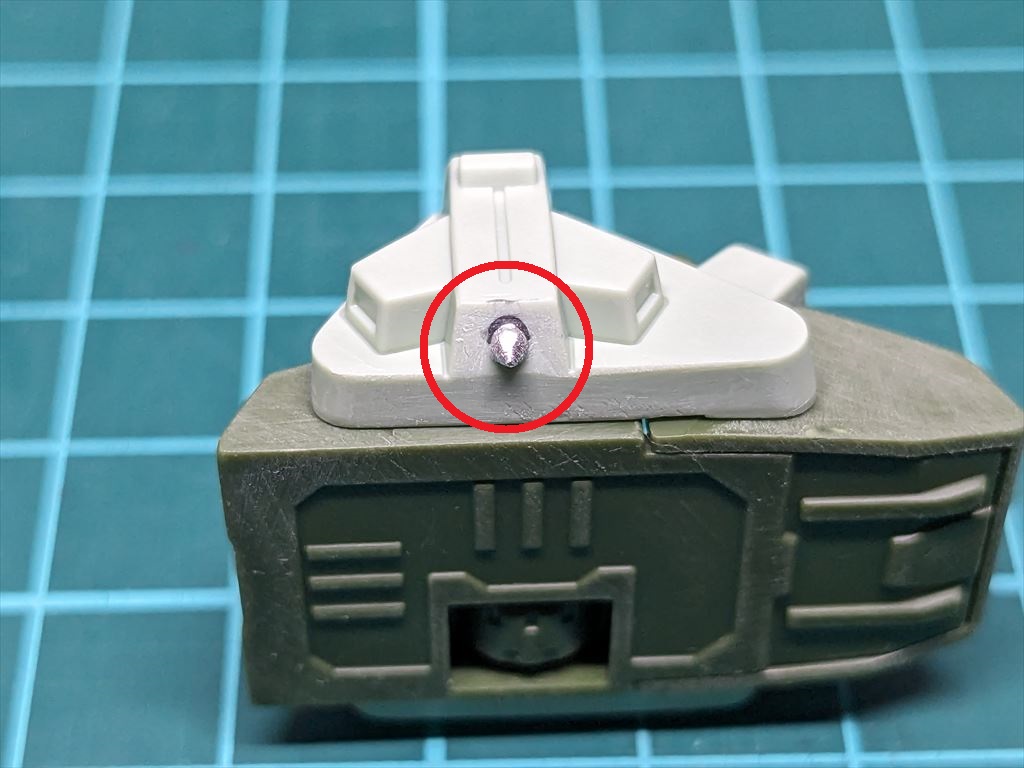 ヘヴィマシンガン上のグレネードランチャーの発射口は凸モールドだったため、2.5mmドリルで開口。