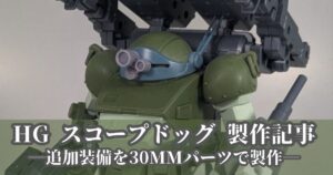 次回は、30MMシリーズのパーツを組み替え・加工して製作した「HGスコープドッグ用追加装備」の工作工程を詳しく紹介します。